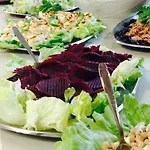 Snídaně se každé ráno servíruje v restauraci. Hosté mohou vyzkoušet zdravou kuchyni kuchyni, pokud navštíví restaurace s mořskými plody Ta Pawla, umístěnou 200 metrů daleko.