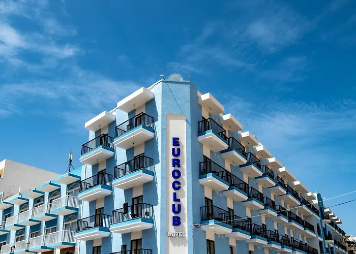 Ubytování se nachází 10 minut z centra města St. Paul's Bay, v blízkosti Kasino Oracle. Ptačí park Birdpark Malta je 2 km daleko od Euroclub Hotel. Místní autobusová zastávka Bugibba Bay 1 - Alighting je vzdálena 500 metrů.